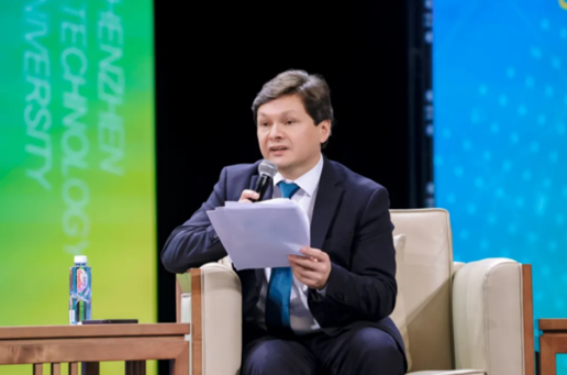 在圆桌研讨环节,主持人深技大国际合作与交流部主任曾思予先后提问新加坡南洋理工大学理学院副院长周若羽教授、法雷奥(德国)开关及传感器公司高级产业总监斯特芬·克拉尔曼博士、哈萨克斯坦国立艺术学院科研副校长卡比勒·哈里科夫教授、塞尔维亚尼什音乐家协会主席德拉加娜·斯帕西奇教授,探讨人工智能对大学、企业、艺术及个人的影响。